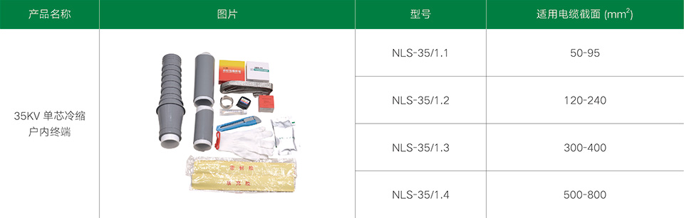 35kV單芯冷縮電纜附件系列產(chǎn)品,適用于21/35、26/35kV單芯聚乙烯和交聯(lián)聚乙烯電力電纜。冷縮電纜附件采用進口液態(tài)硅橡膠材料制造而成,不但具有十分優(yōu)良的電氣性能,而且還具有優(yōu)異的憎水性、高彈性、使用壽命長及恒定的收縮壓力等物理特性。采用冷縮電纜附件,無需明火及特殊工具,只需輕輕抽取塑料支撐條即可,就能自動收縮復(fù)位,安裝非常方便于工作。具有良好的電氣性能和機械性能,能在各種惡劣的環(huán)境條件下長期使用。具有重量輕、安裝方便等優(yōu)點。廣泛地應(yīng)用于電力、石油、化工、冶金、鐵路、港口和建筑各個領(lǐng)域。